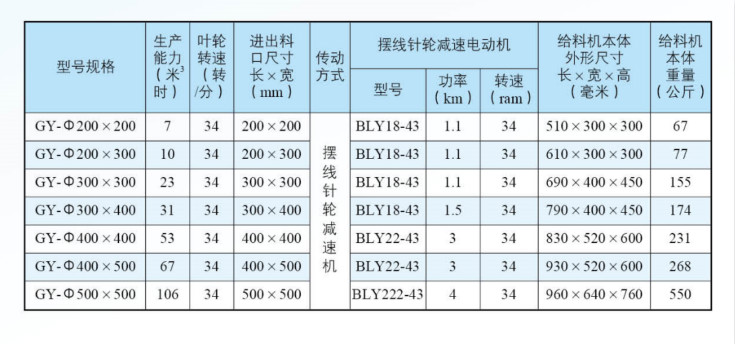 二、全自動包裝秤GY型剛性葉輪式給料機主要技術參數:
