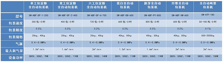 淀粉(包括玉米淀粉、馬鈴薯淀粉、木薯淀粉、甘薯淀粉、小麥淀粉、變性淀粉)物料的產品特點物料粒度細,水分變化大、物料流動性好等眾多因素使淀粉物料的全自動包裝一直困擾眾多淀粉生產企業,也考驗著眾多淀粉包裝設備生產企業,棗莊市三維技術有限公司在20余年(1996年5月成立)的生產歷程中,根據淀粉物料的特點結合自身技術優勢研發的淀粉全自動包裝機:包括單工位淀粉包裝機SW-ABF-DF-1-200;雙工位淀粉包裝機SW-ABF-DF-2-400;六工位淀粉包裝機SW-ABF-DF-6-600;